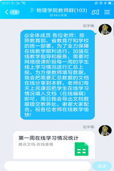这是一条全力保障之路!为了保障教师们能够顺利开展线上教学,beat365正版唯一官网必一教学管理人员也是全力以赴地做好各项工作。为了有效提升教师在线教学能力,教办主任伍宇楠老师全力提供线上教学培训、技术解答、协调服务等保障工作。伍老师深入了解教师的培训效果和在线教学实际需求,积极联系传达学校的各类在线教学平台提供技术支持,组织学院老师们加入“雨课堂培训”微信和QQ群、“超星学习通”QQ群、“钉钉在线教学”群等多个在线培训群,配合学院技术人员做好在线教学咨询指导和教师相互间的经验交流工作。为保障在线课程的授课质量,伍老师积极协调、主动服务相关老师更新完善视频、习题等学习资料。他每日几乎是全天在线,及时分享在线教学的学习资料、文件,协调各平台及时解决教师的问题。
