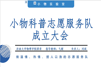 在此次成立大会中,小物科普志愿服务队明确了团队的定位与目标,把没有错误地完成每一次的志愿活动作为自己最低的要求,把让小朋友们在志愿活动中学到受益一生的道理与知识作为自己的最高追求。同时,服务队成员们也把此次的志愿服务项目当成生命中的一次契机,从中学习志愿精神,并将自己的专业知识真正用在社会实践上,相信这群“用青春凿渠”的大学生志愿者的共同努力下,小物实验室一定会取得巨大进步。