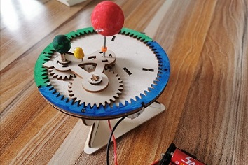 8月5日,服务队中身住济南莱芜区的亓志昊同学,借助辅导班教课的便利,进行了多次线下科普志愿服务。8月5日上午八点半,亓志昊同学像往常一样上班,但这次与以往不同的是,他带了来三球仪(又称月地运行仪是一种天文教学和天文普及仪器),三球仪由代表太阳、地球和月球的三个小球组成,并有机械联动装置,用以演示三球关系和由此产生的一些天文现象。亓志昊同学通过与小朋友们共同组装三球仪,通过一块动手组装,让小朋友们感受到了科学的乐趣,组装完成后,将电源接通,看着太阳、地球、月球的相互运动,小朋友们发出了惊呼,感叹科学的神奇。亓志昊同学借助三球仪向小朋友们解释了太阳、地球、月球各自的运动规律,以及天体运动对地球上人们生活的影响,小朋友们听的津津有味。讲解完之后,小朋友们追问亓志昊同学了许多问题,亓志昊同学也非常高兴的用通俗易懂的语言回答了他们。