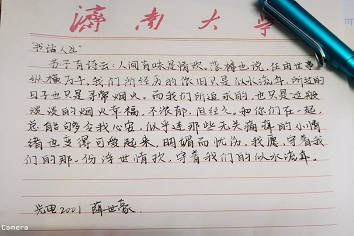 活动当天,同学们提前打开相关设备进行等待,并准时进入会议室,志愿者们及时调试设备并进行了会议提醒。本次活动由两部分组成,首先是“书话人生”读书分享部分。同学们需要从自己喜欢的书籍中选出优美的段落句子并誊抄出来与大家分享,誊抄的段落字数在200字左右,誊抄完成后拍照,并附上参加者誊抄时的照片;接下来是“封面设计”部分。同学们需要选择自己喜欢的书籍,并为它设计一个体现书籍特点的封面,同时简述创作理念,最终以电子版形式提交。活动过程中同学们积极参与,相互分享,并设计出了属于自己的书籍封面,提高了自己对书籍内容的理解,活动气氛轻松又融洽,至此活动圆满结束。